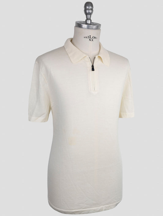 Kiton KNT Cashmere Silk Half-Zip Polo White Handmade Italy