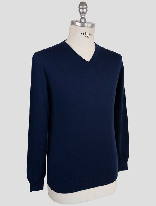 Kiton Cashmere Silk V-Neck Sweater Blue - Handmade Italian