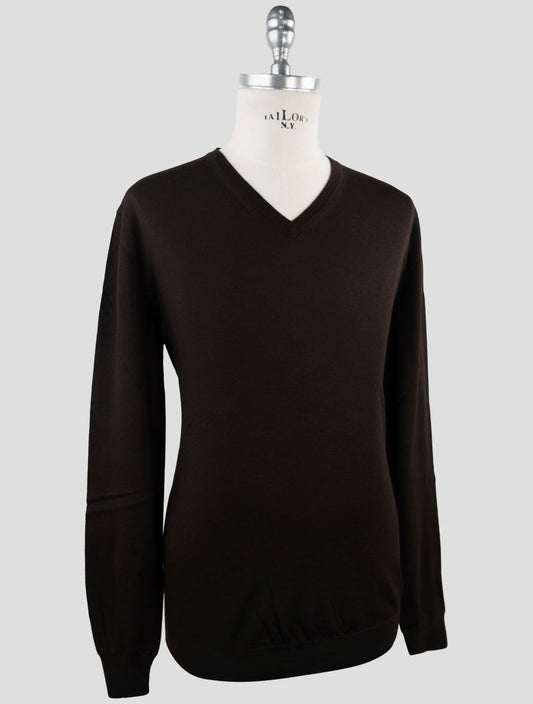 Kiton Premium Cashmere Silk V-Neck Sweater Brown Italian Luxury