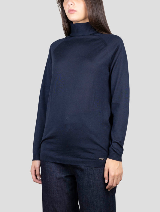 Kiton Blue Cashmere Silk Turtleneck Sweater Women Italian Handmade