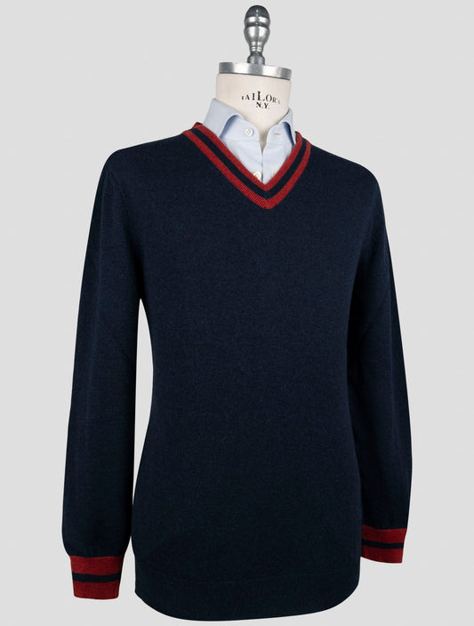 Kiton Blue Cashmere Sweater V-Neck