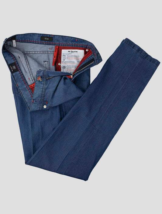 Kiton Blue Cotton Linen Jeans