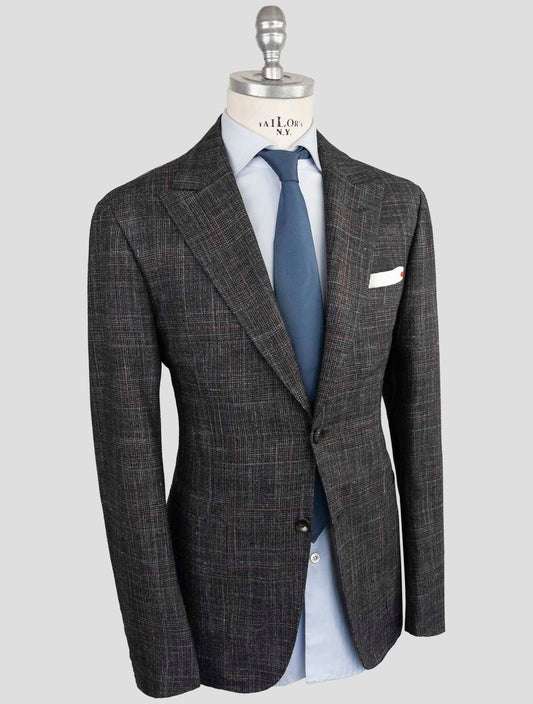 Kiton Handmade Cashmere Wool Silk Linen Suit Dark Gray Italian