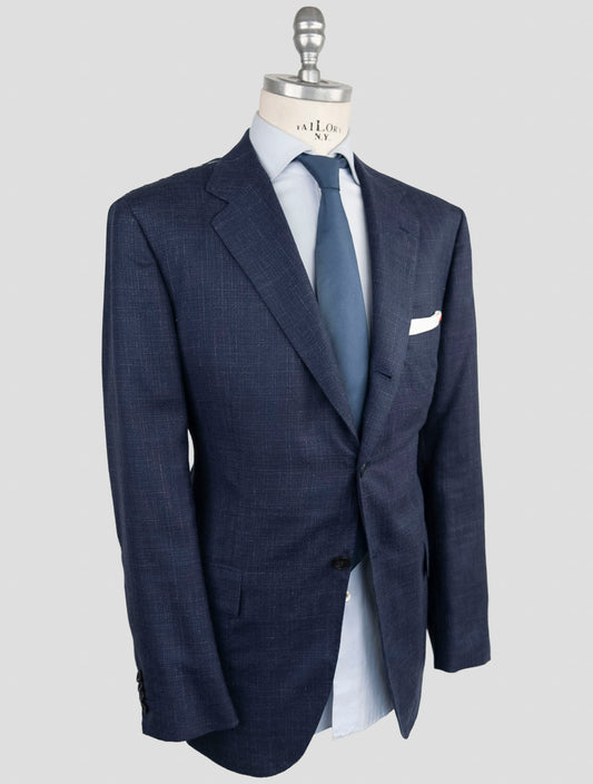Kiton Handmade Blue Cashmere Silk Linen Luxury Men's Suit Italian