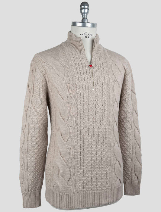 Kiton Pure Cashmere Half Zip Sweater Men's Beige Italian Luxury