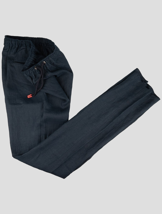Kiton Blue Linen Pants Men's - Italian Tailored Summer Trousers
