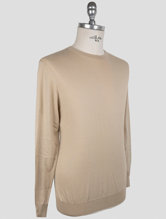 Kiton Men's Premium Cotton Crewneck Sweater Beige Italian Made