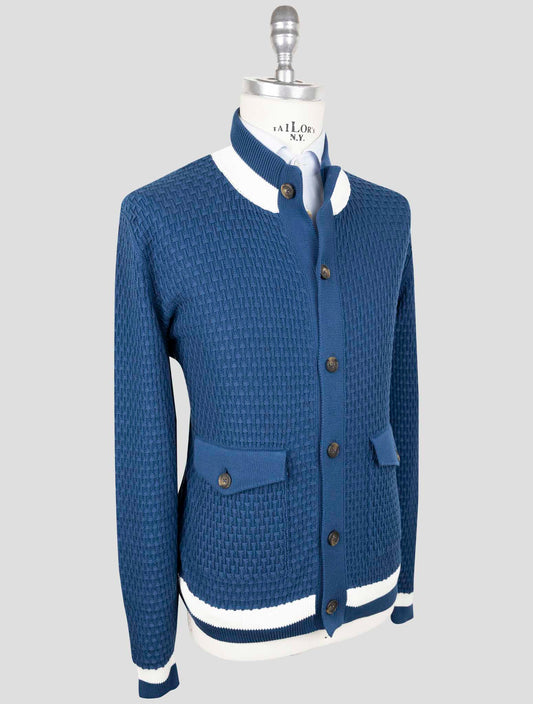 Kiton Premium Cotton Button-Up Cardigan - Blue Made in Italy