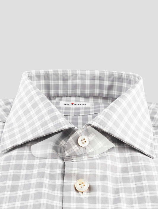 Kiton Gray Cotton Check Shirt - Handmade Italian Regular Fit