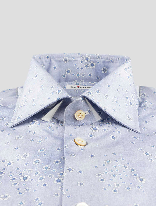 Kiton Light Blue Floral Cotton Shirt - Handmade Italian Regular Fit