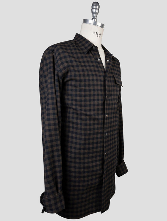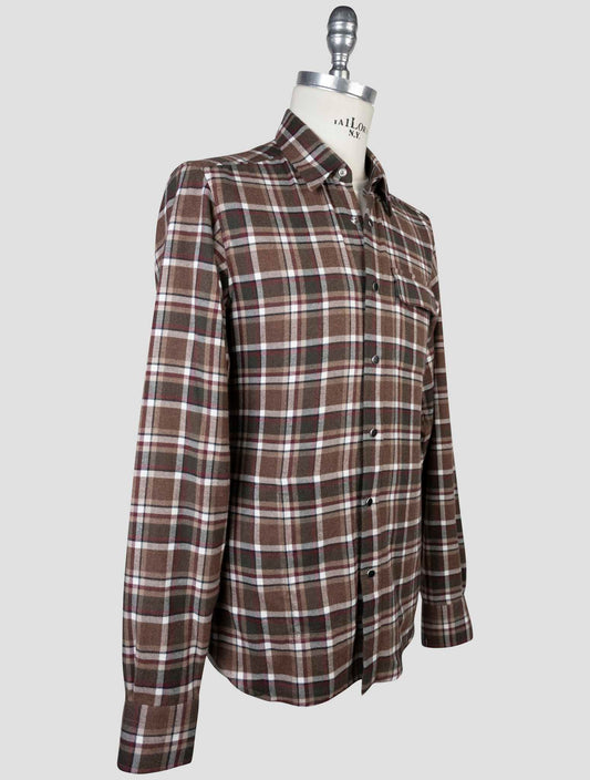 Kiton Buba Brown Plaid Cotton Shirt - Italian Tailored Dress Shirt