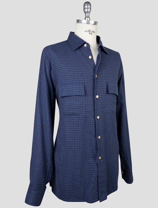 Kiton Blue Wool Silk Linen Shirt UMBI - Italian Tailored Winter