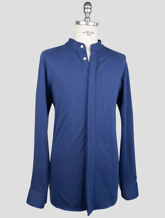 Kiton Blue Cotton Stretch Shirt - Italian Tailored Fit