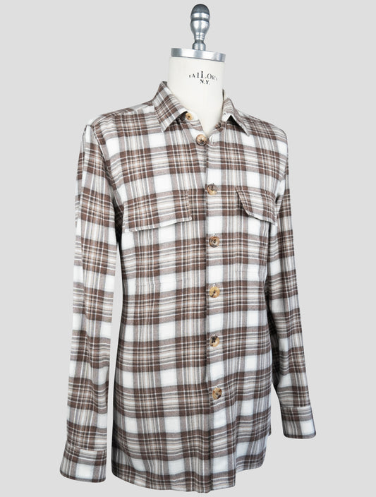 Kiton Beige Cashmere Wool Silk Linen Plaid Shirt - Italian Luxury