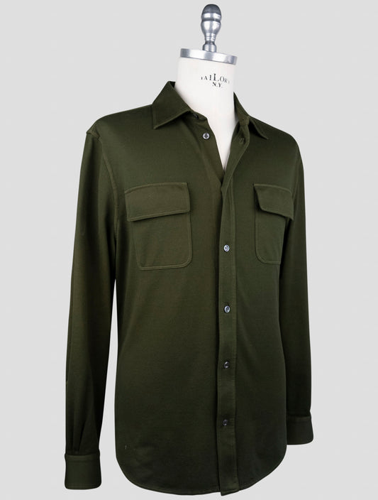 Kiton Green Cotton Stretch Dress Shirt - Italian Tailored Fit