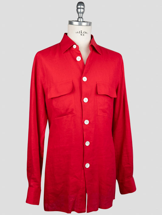 Kiton Red Linen Shirt - 100% Italian Premium Solid Dress Shirt
