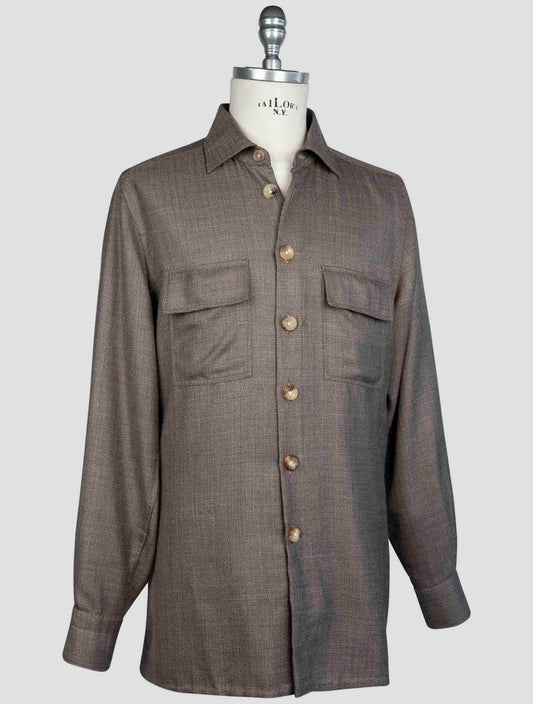 Kiton Brown Virgin Wool Cashmere Shirt - Handmade Italian