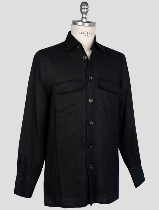 Kiton Black Linen Shirt - Premium Italian Men's Summer Dress Shirt