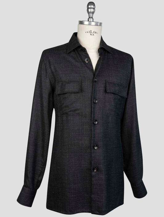 Kiton Cashmere Silk Linen Shirt Dark Gray - Italian Summer Luxury