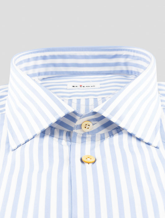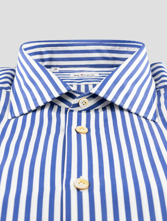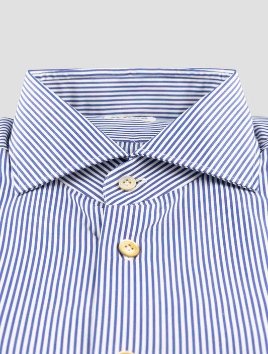 Kiton Premium Blue White Striped Cotton Dress Shirt Italian Made