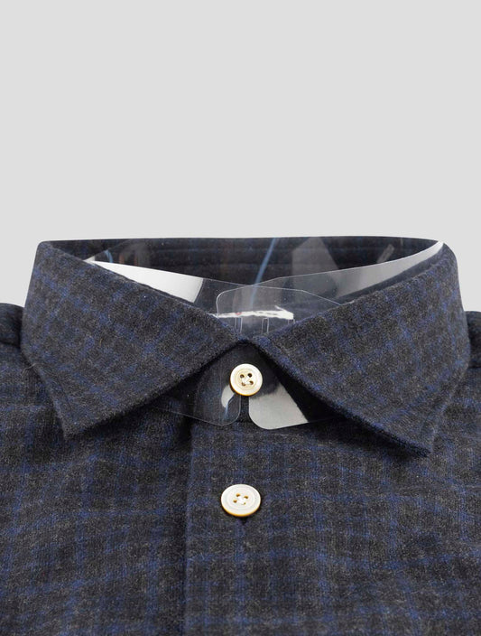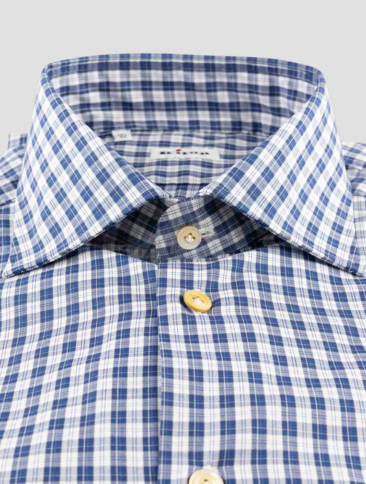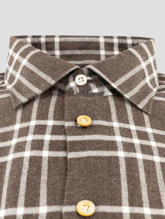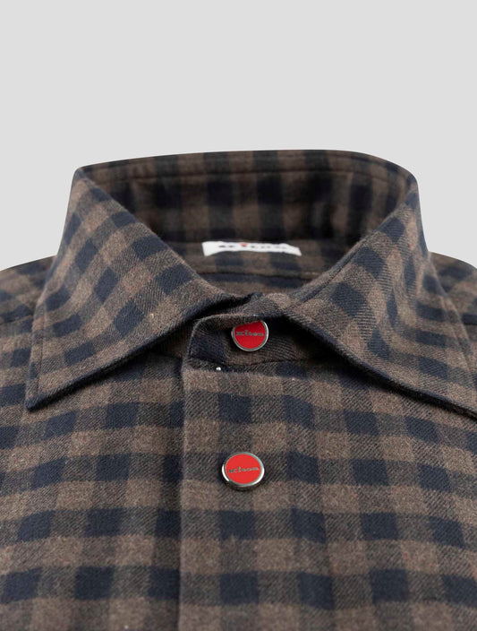 Kiton Premium Cotton Plaid Shirt - Blue Brown Italian Crafted