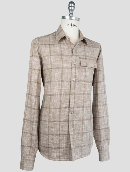 Kiton Beige Virgin Wool Silk Overshirt - Italian Plaid Check