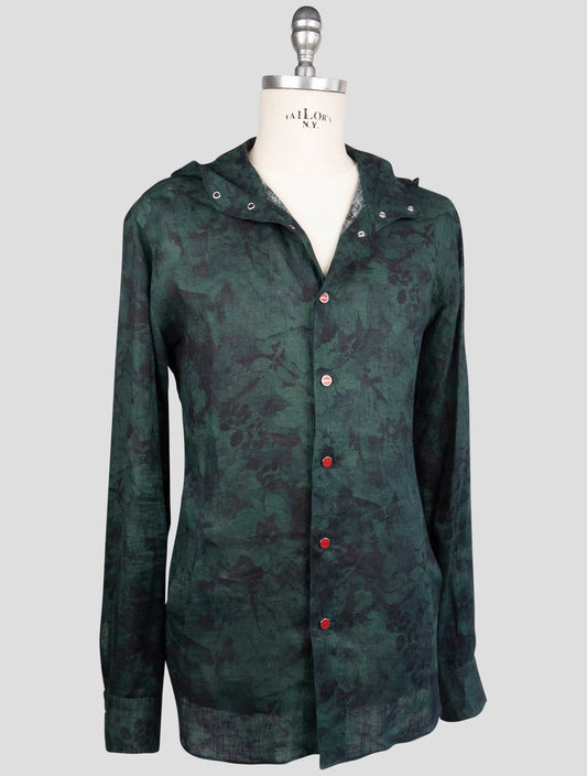 Kiton Green Linen Overshirt Mariano - Hooded Italian Luxury Shirt
