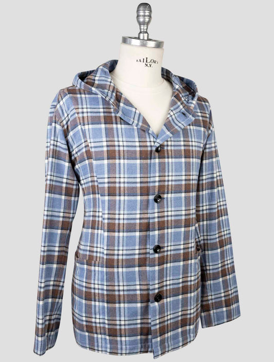 Kiton Brown Blue Plaid Shirt - Wool Silk Cotton Handmade Italy