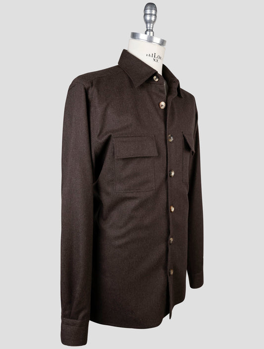 Kiton Brown Wool Shirt - Handmade Italian Regular Fit Summer