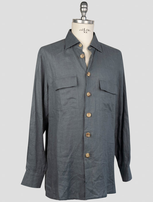 Kiton Gray Linen Shirt - 100% Pure Italian Crafted Long Sleeve