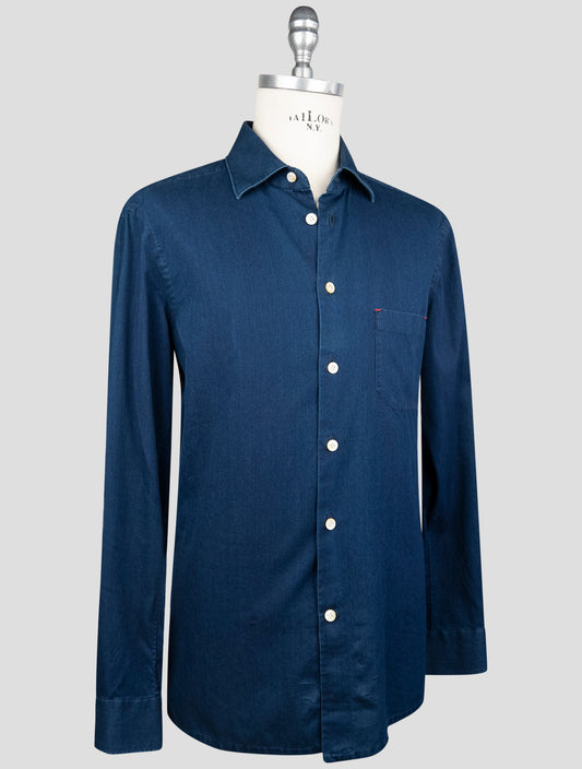 Kiton Blue Cotton Stretch Shirt - Premium Italian Denim BUBA
