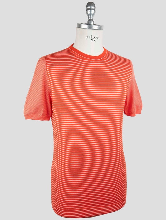 Kiton Premium Cotton Striped T-Shirt Red White Italian Luxury