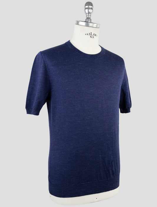 Kiton Blue Silk Cashmere Linen T-Shirt - Handmade Italian