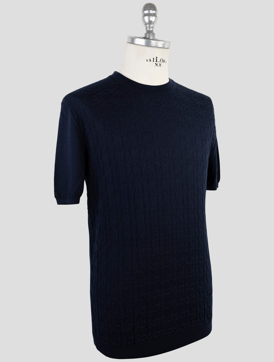 Kiton Premium Textured Cotton T-Shirt Blue Italian Crafted
