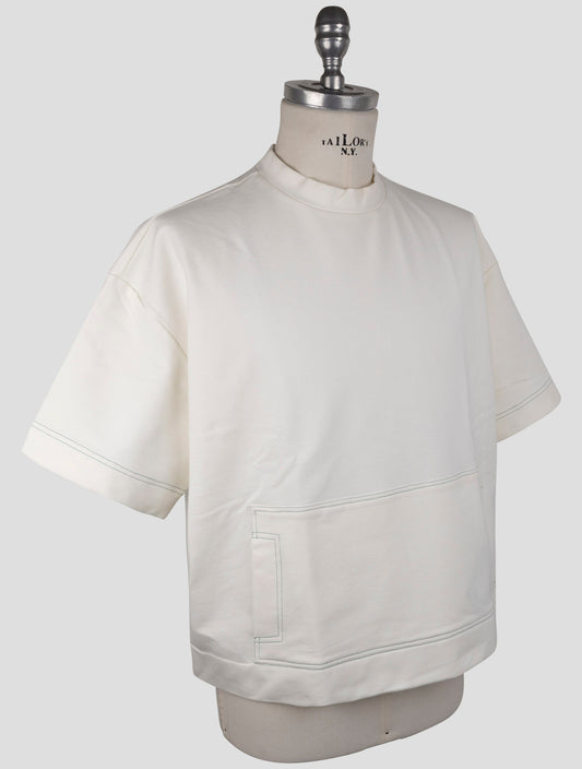 Kiton Premium Cotton Cashmere Crewneck Sweater White Italian