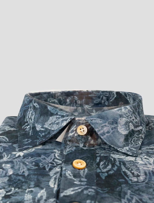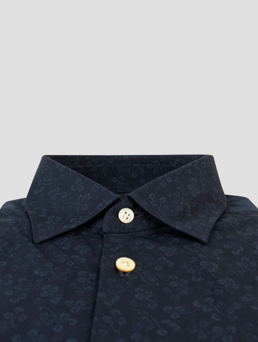 Kiton Blue Floral Cotton Shirt - Handmade Italian Regular Fit