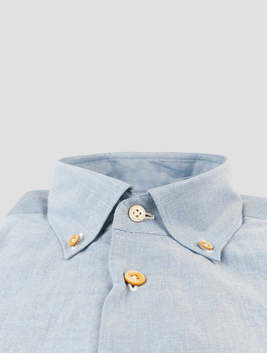 Kiton Cotton Linen Shirt Blue Handmade Italian Regular Fit Men