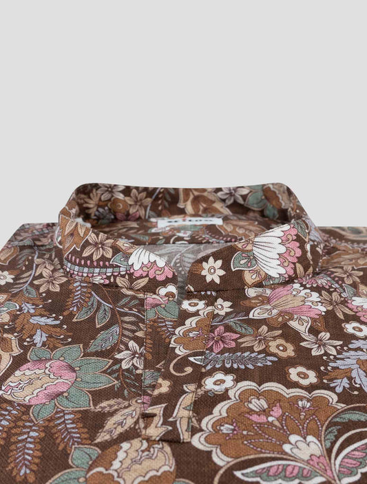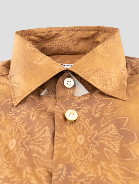 Kiton Brown Cotton Floral Dress Shirt - Italian Handmade Premium