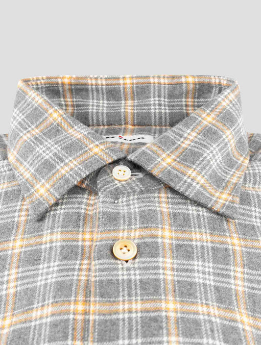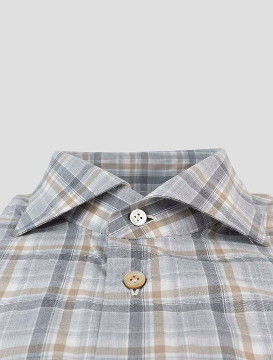 Kiton Gray Check Cotton Dress Shirt Handmade Italy Regular Fit