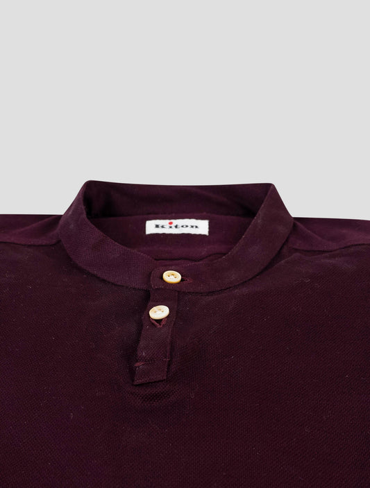 Kiton Burgundy Korean Collar Cotton Shirt - Handmade Italian Men's