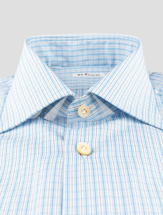 Kiton Handmade Cotton Light Blue Plaid Dress Shirt Italian