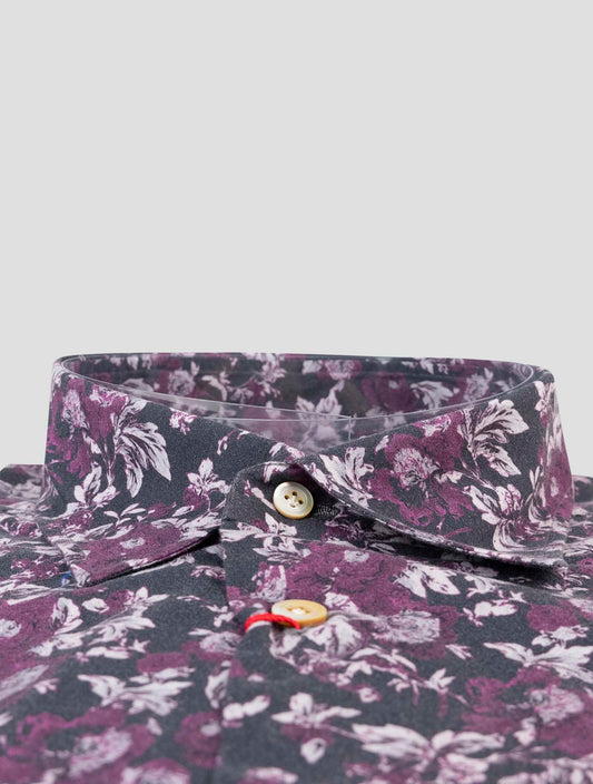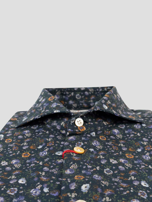 Kiton Handmade Cotton Floral Shirt Men's Regular Fit Italian