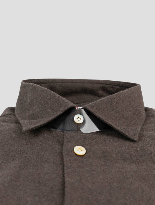 Kiton Handmade Brown Cotton Dress Shirt - Italian Luxury Menswear