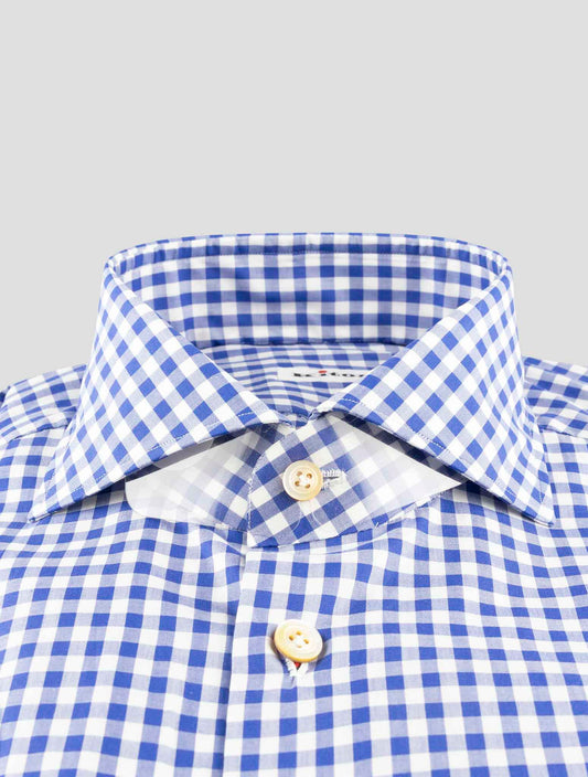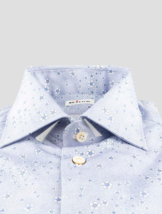 Kiton Premium Cotton Dress Shirt Blue White Geometric Pattern