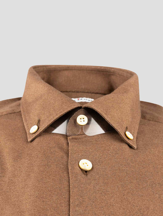 Kiton Brown Cotton Cashmere Shirt - Italian Handmade Regular Fit