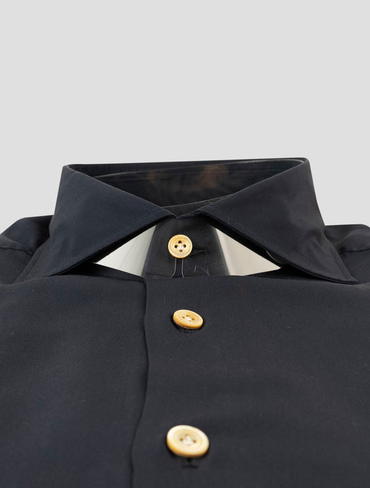 Kiton Blue Cotton Dress Shirt - Premium Handmade Italian Regular Fit