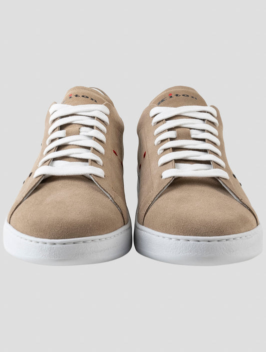 Kiton Handmade Beige Suede Italian Leather Sneakers Men