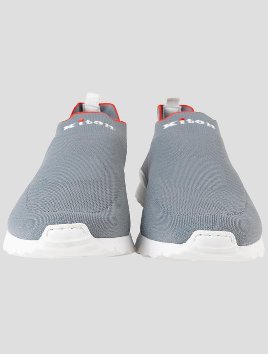 Kiton Gray Cotton Elastane Sneakers - Handmade Italian Luxury