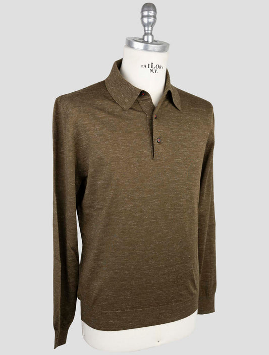 Kiton Green Silk Cashmere Linen Sweater Polo