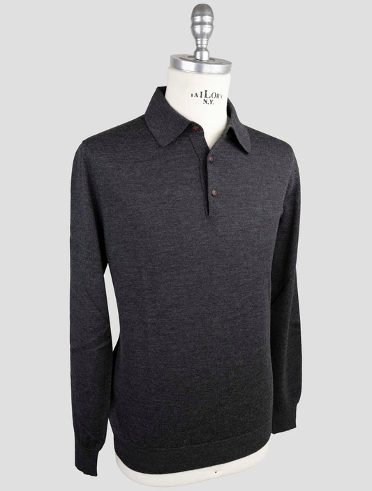 Kiton Premium Silk Cashmere Linen Polo Sweater - Black Italian